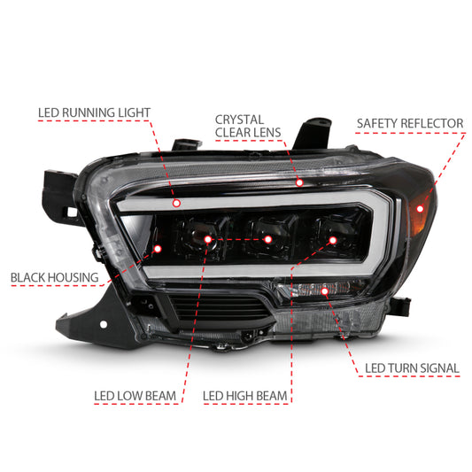 ANZO 2016-2018 Toyota Tacoma LED Projector Headlights Plank Style Black w/ Amber