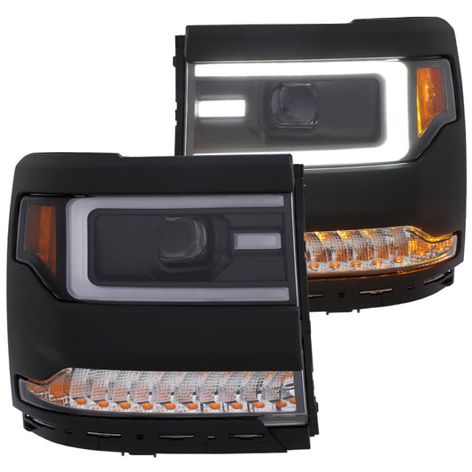 ANZO 16+ Chevy Silverado 1500 Projector Headlights Plank Style Black w/Amber/Sequential Turn Signal
