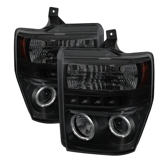 Spyder Ford F250/350 08-10 Projector Headlights LED Halo LED Blk Smke PRO-YD-FS08-HL-BSM