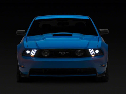 Raxiom 10-12 Ford Mustang LED Projector Headlights SEQL Turn Signals- Blk Housing (Clear Lens)