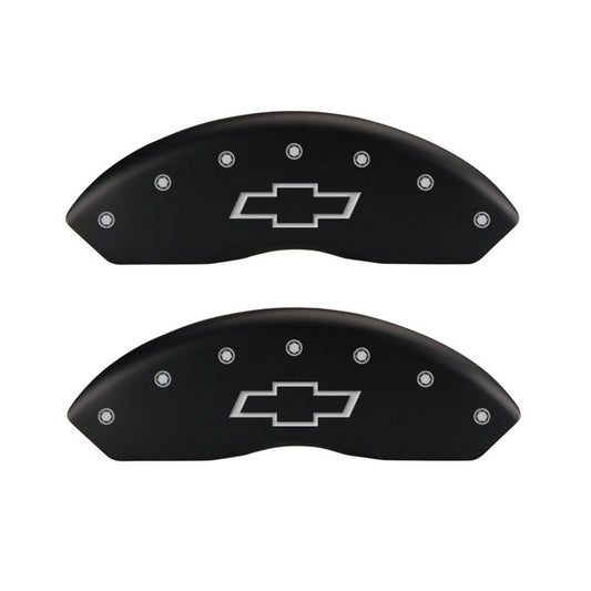 MGP 4 Caliper Covers Engraved Front & Rear Bowtie Black finish silver ch