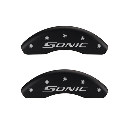 MGP 4 Caliper Covers Engraved Front & Rear Sonic Black finish silver ch