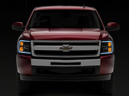 Raxiom 07-13 Chevrolet Silverado 1500 Axial Series Headlights w/ LED Bar- Blk Housing (Clear Lens)