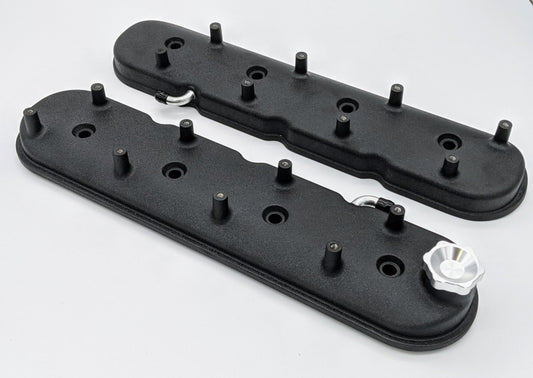 Granatelli 96-22 GM LS Standard Height Valve Cover w/Angled Coil Mount - Blk Wrinkle (Pair)
